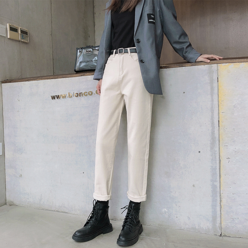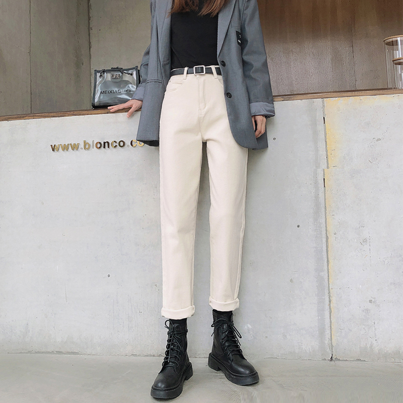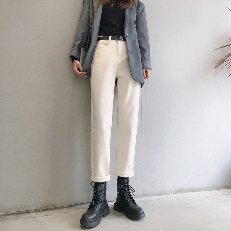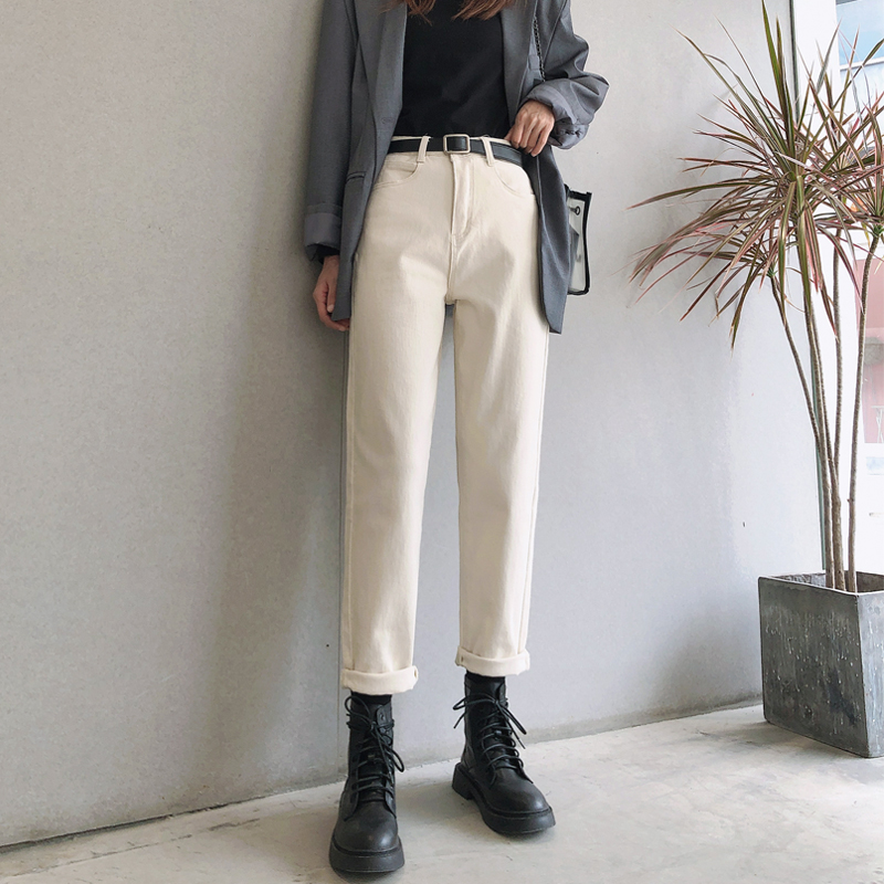 Beige straight jeans women's spring and autumn 2021 new high waist thin loose wide leg daddy white pants summer