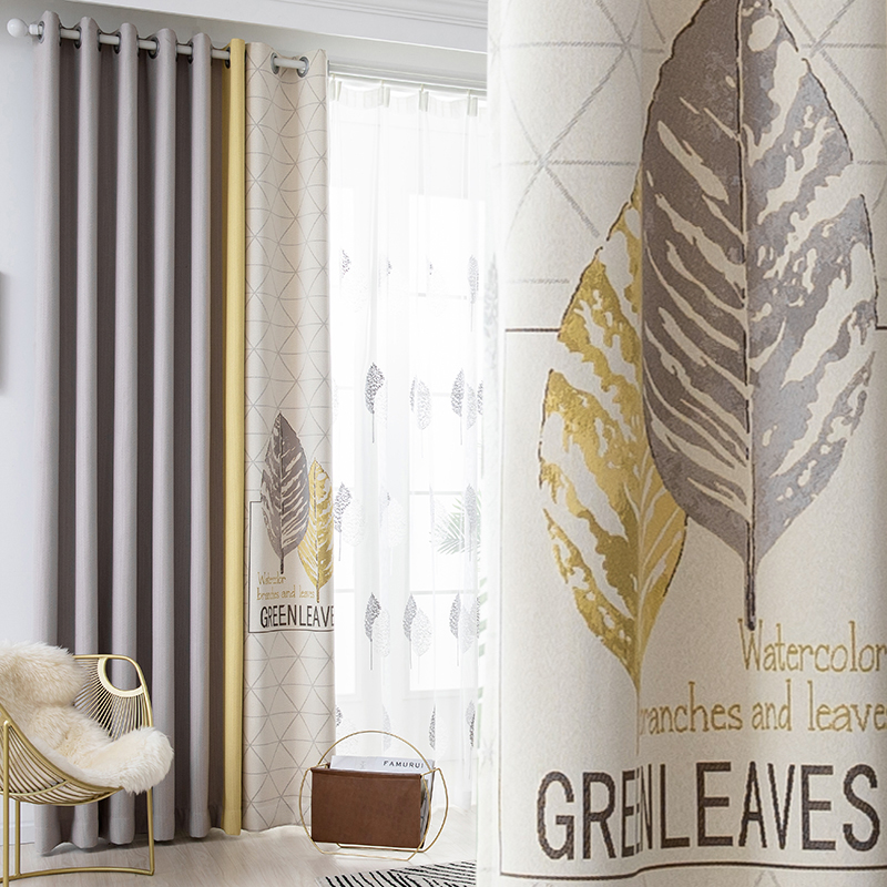 Warm rice gray yellow leaf curtain gray leaf gauze curtain blue leaf gauze curtain warm rice gray blue leaf curtain
