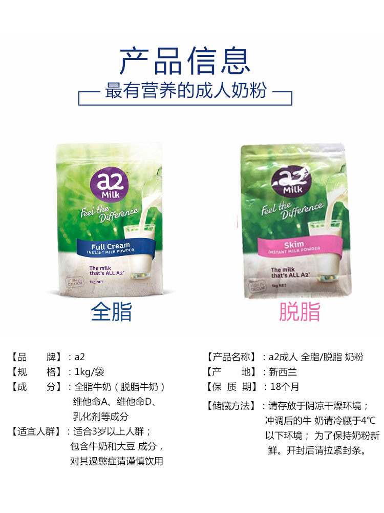 Australia imported a2 full-fat adult milk powder high calcium nutritional breakfast students pregnant women middle-aged and elderly teenagers 1KG