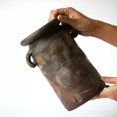 Japan Bizen Yaki Goro border guard kiln made ear-shaped flowers into the heavy fall gray fire marks are beautiful in the Ming