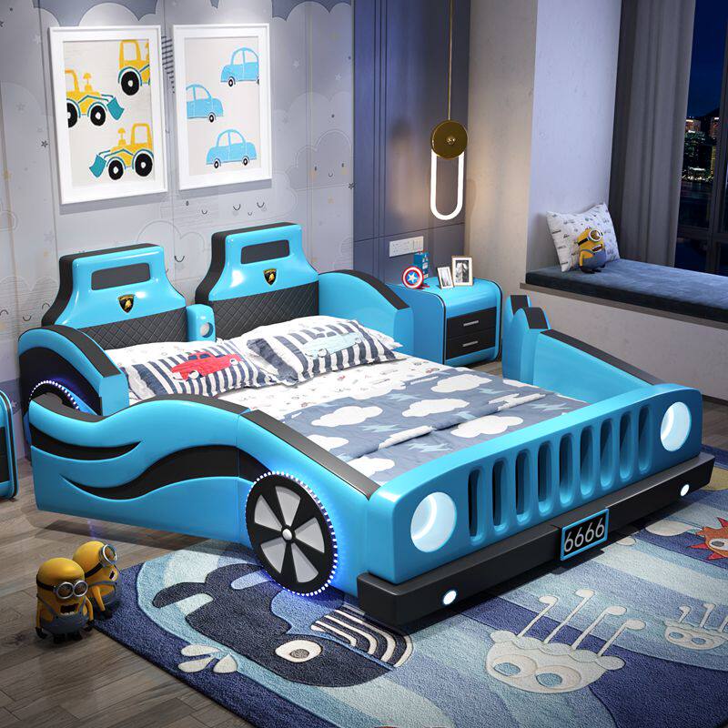 Kids Boy Single Car Mu 1 5m with solid wood fence girl princess cartoon leather simple furniture