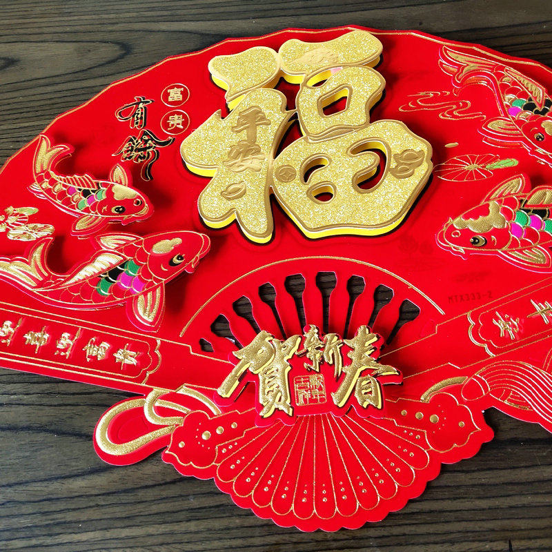 2021 Year of the Ox New Year Spring Festival decoration large fan-shaped Blessing word three-dimensional sticker big red Living Room entrance Home