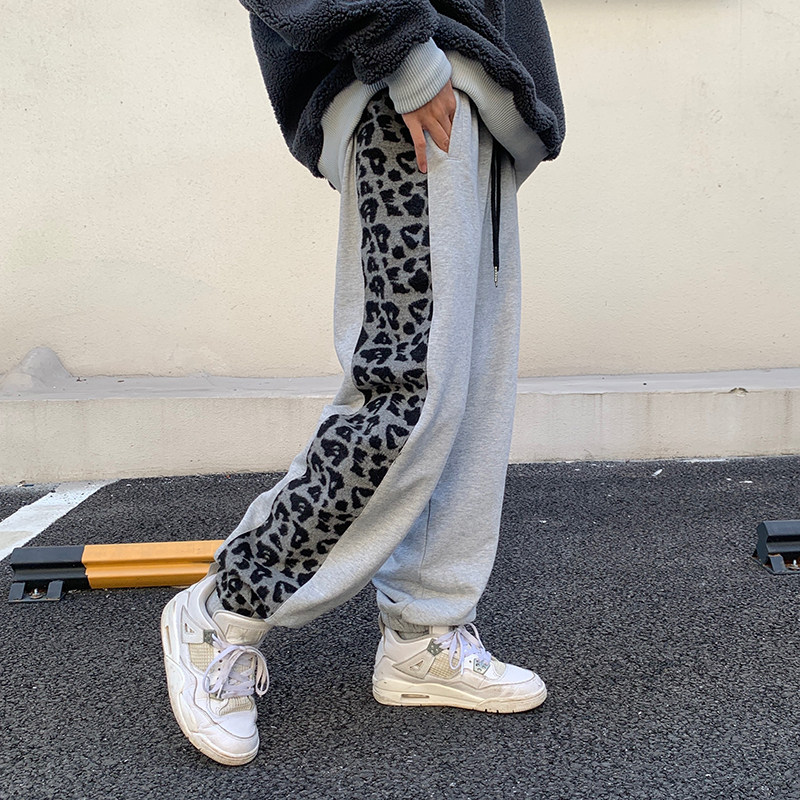 No bears, BAO WEN loose waist beam feet relaxed pants for men and women spring and autumn loose tube trousers