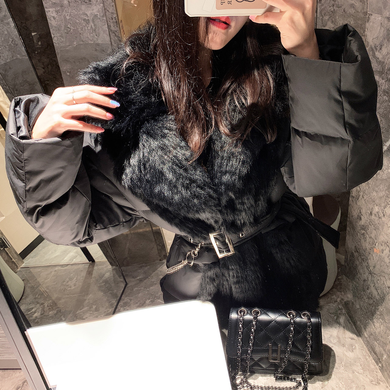 Trendy chain belt sensible slim collection waist cotton clothes Women 2022 Winter new temperament wool splicing medium long version cotton clothes