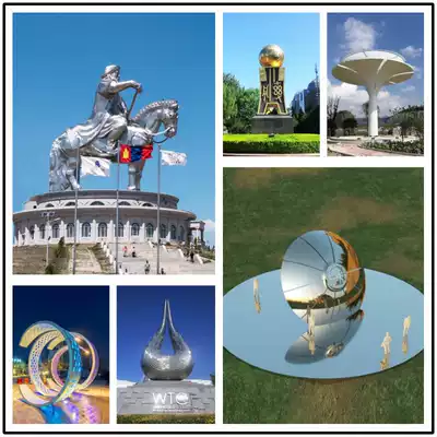 Professional manufacturers large urban landscape sculpture mirror creative metal green space ornaments luminous stainless steel sculpture
