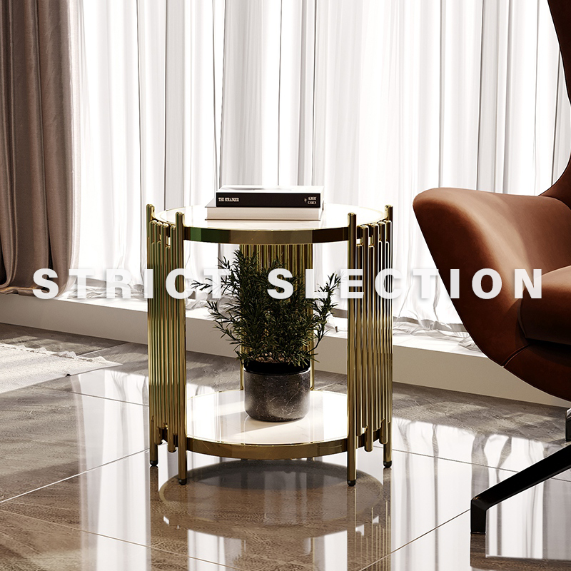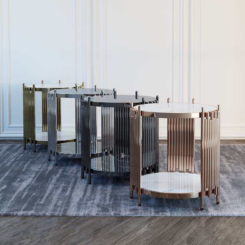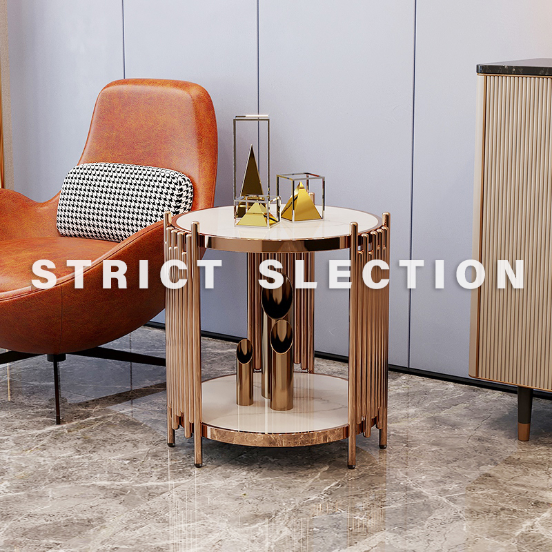 U Home|Stainless steel marble rose gold coffee table light luxury bedroom bedside table