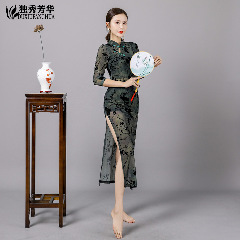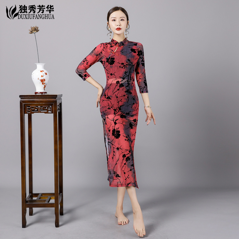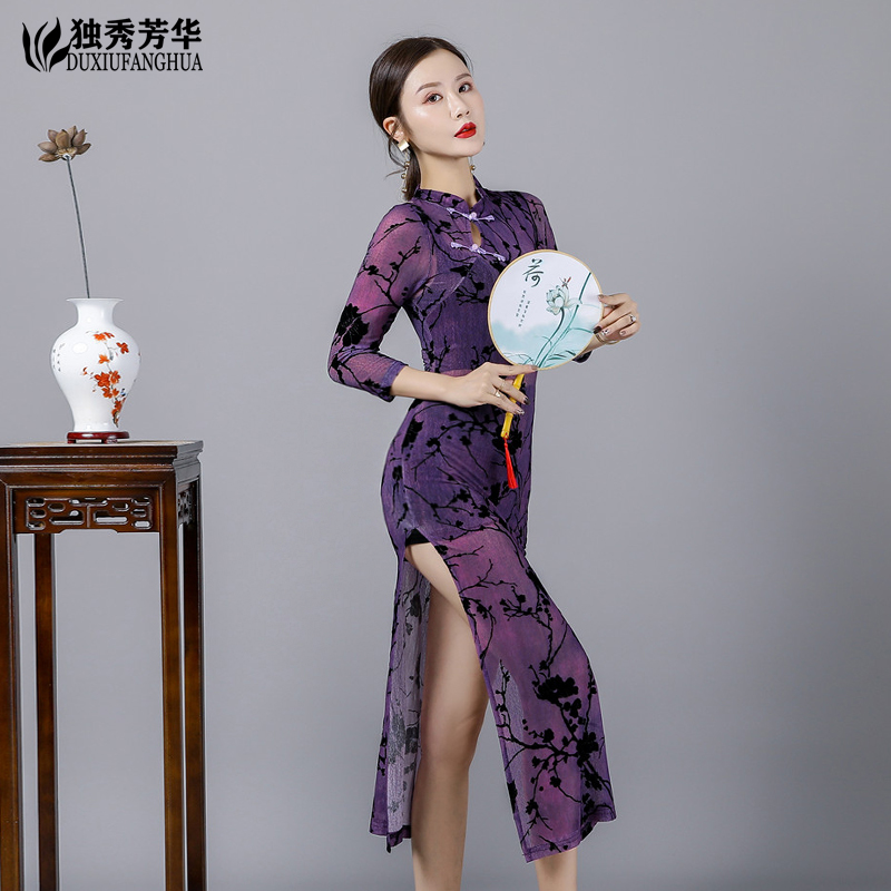 Classical Dance Qipao Dance Practice Costume 2020 new Chinese Wind Improvement Qipao Autumn Winter Performance Out of Sexy