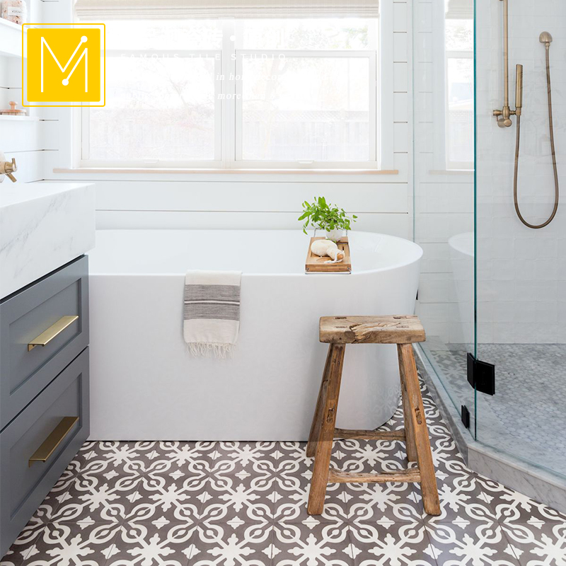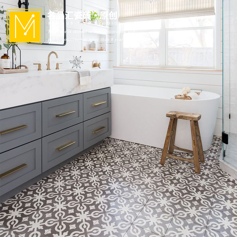 Grey small flower brick and floor tiles 20 retro toilet full porcelain flower sheet Kitchen Balcony Terrace Terrace Genguan Anti Slip Floor Brick-Taobao