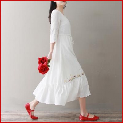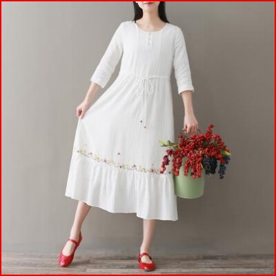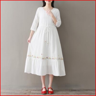 Words Retro Embroidery New A Literature Dress Spring and Summer Lene Fairy 2020 Optional Dress
