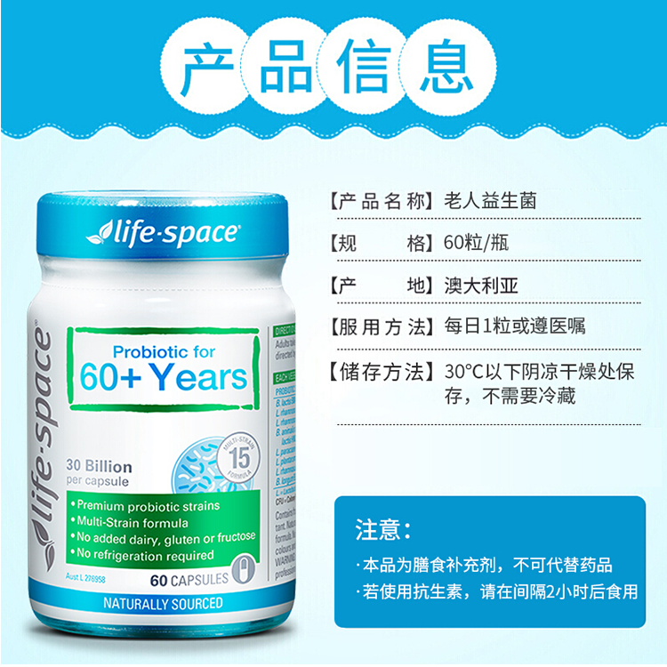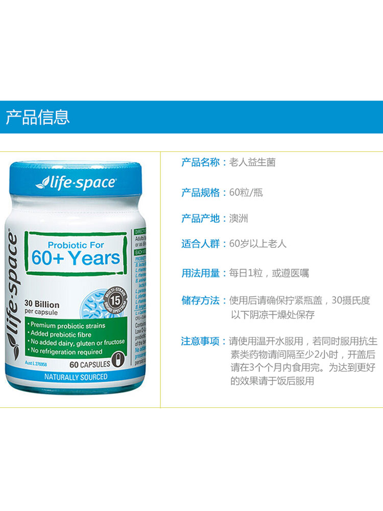 Australian life Space60 middle-aged and elderly probiotic capsules gastrointestinal regulation prebiotics 60 capsules