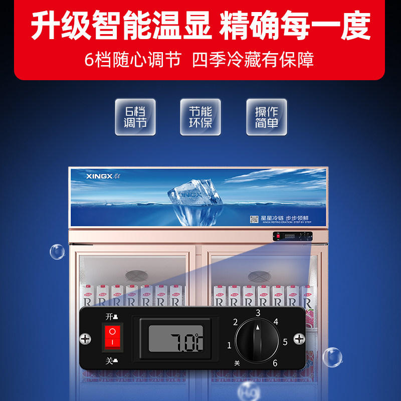 Stars Refrigerated Beverage Cabinet Commercial Wind Straight Cold Intelligent Exhibition Cabinet Fridge Standing Large Capacity Display Beer Cabinet Double Doors
