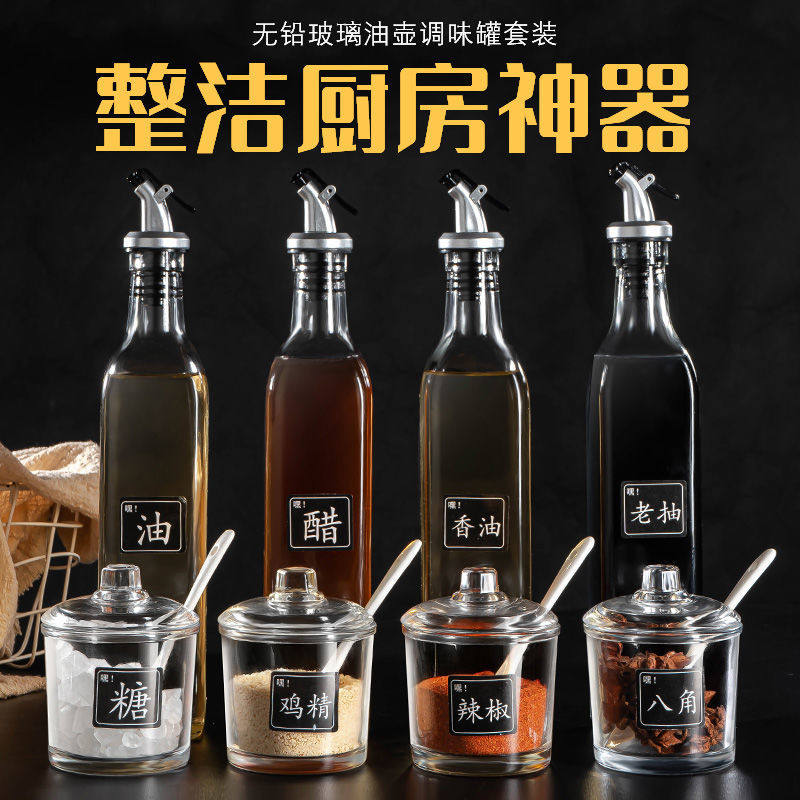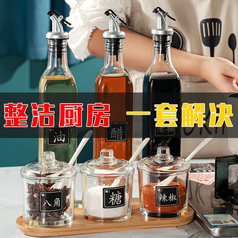 Household combination glass seasoning box salt can seasoning jar seasoning bottle storage box seasoning bottle can set kitchen supplies