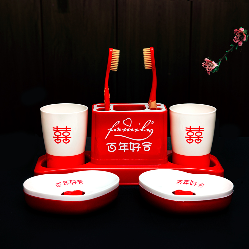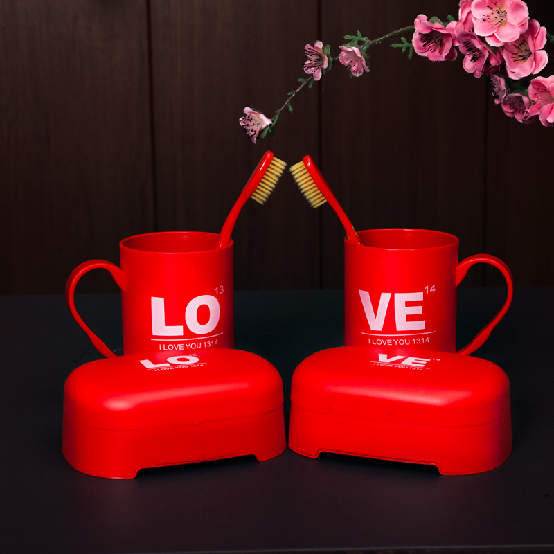 LOVE tooth cup Longfeng toothbrush LOVE tooth cup Longfeng Toothbrush Orange LOVE Tooth Cup Soap Box Toothbrush for hundreds of years Good Loving Pair of Festive Doors Transparent Newlyweds