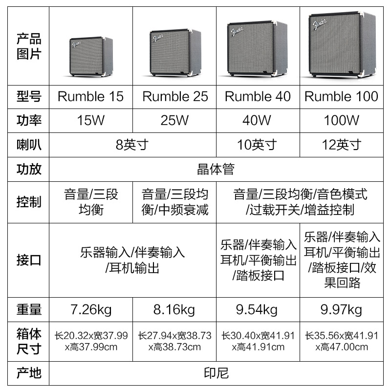 Fender Fendar Electric Bass Speaker Rumble 15 25 40 100 Bass Portable Audio