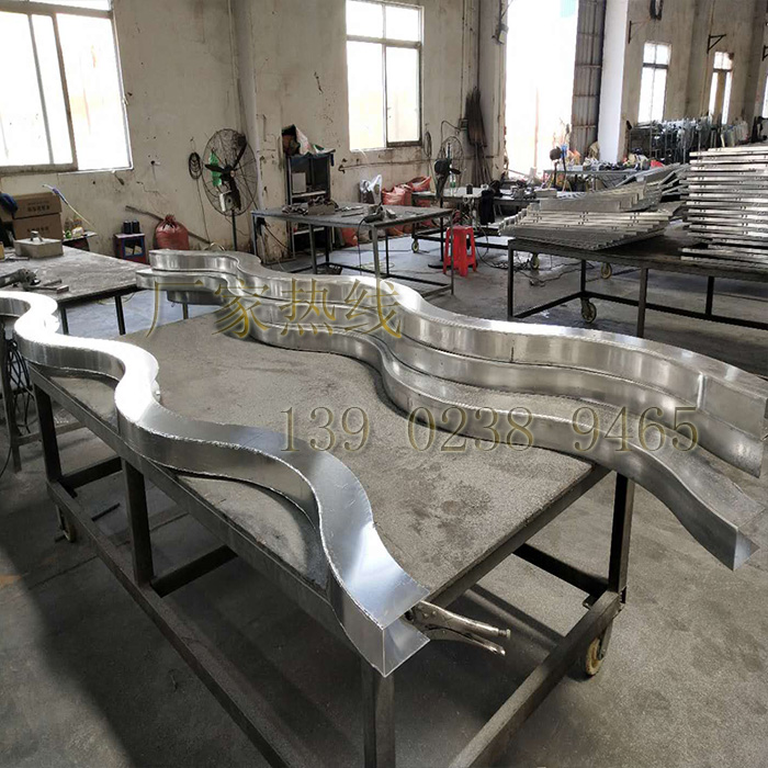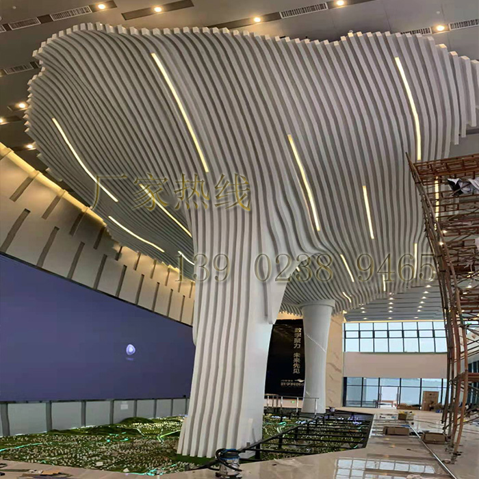Aluminum veneer welding arc aluminum square pass wave shape aluminum tree hotel sample house exhibition center lobby renderings factory customization