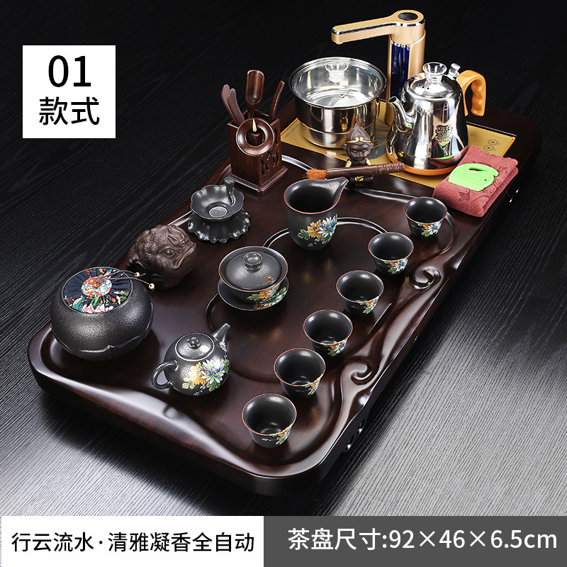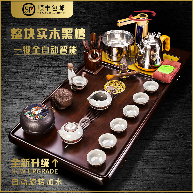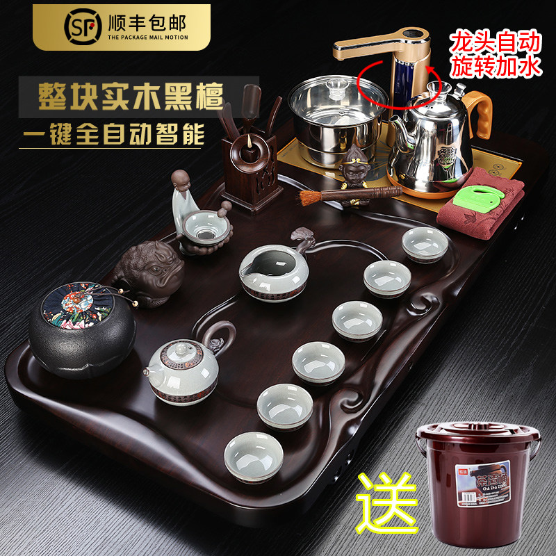 Purple sand kung fu tea set household whole board ebony wood tea tray tea cup set living room office automatic