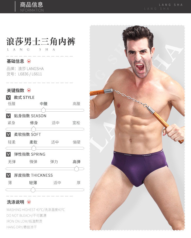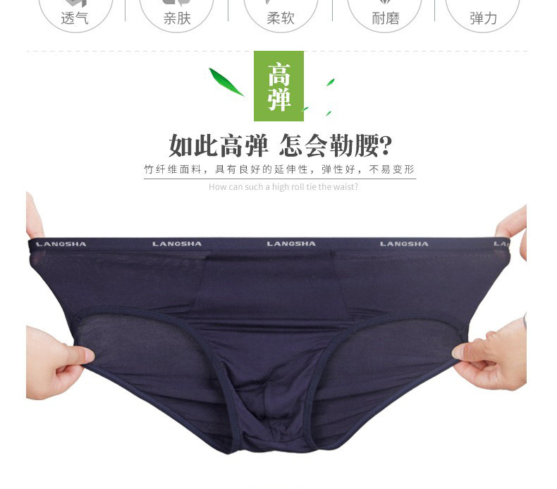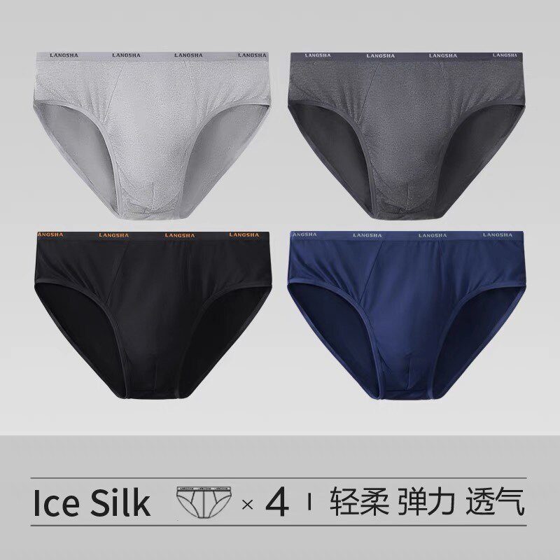 4 packs of Langsha men's briefs, breathable, comfortable, soft, delicate and smooth, bamboo fiber pure cotton briefs head