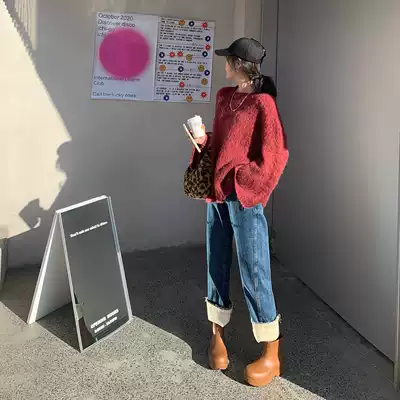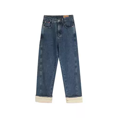 Summer home 2021 early autumn new split curl straight wide leg jeans women Spring and Autumn retro design sense minority