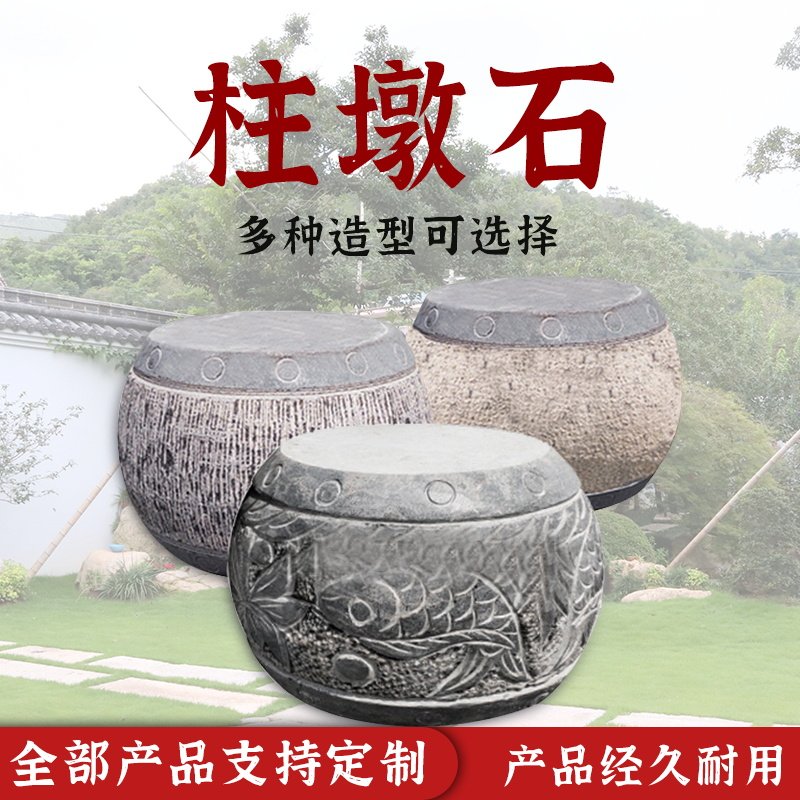Stone pier pillar foundation stone pillar top stone garden courtyard ancient building pillar foot stone carving blue stone pillar pier stone pier base