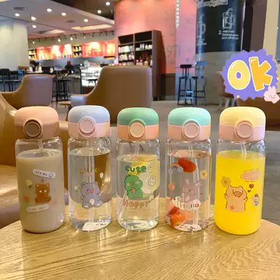 Net red high-value suction tube Cup adult heat-resistant glass cup ins Wind portable student Cup children cute girl