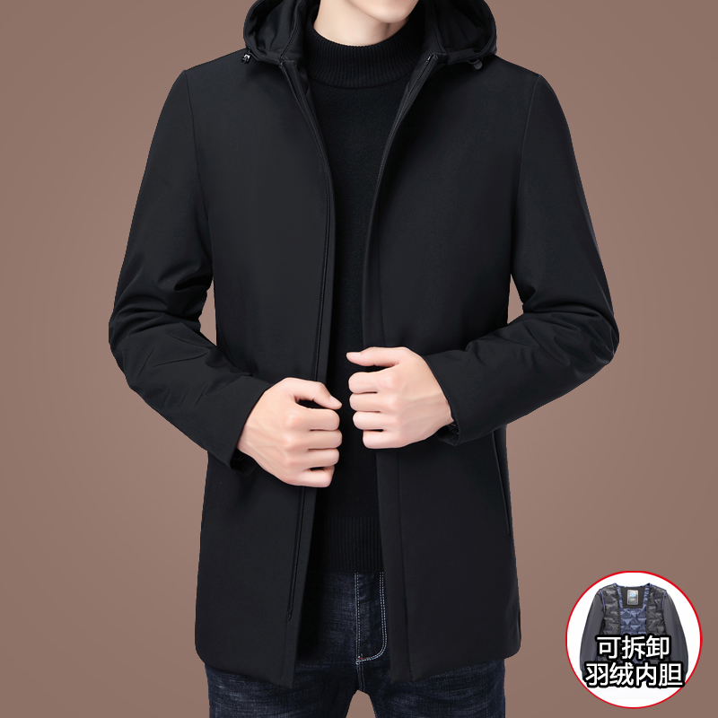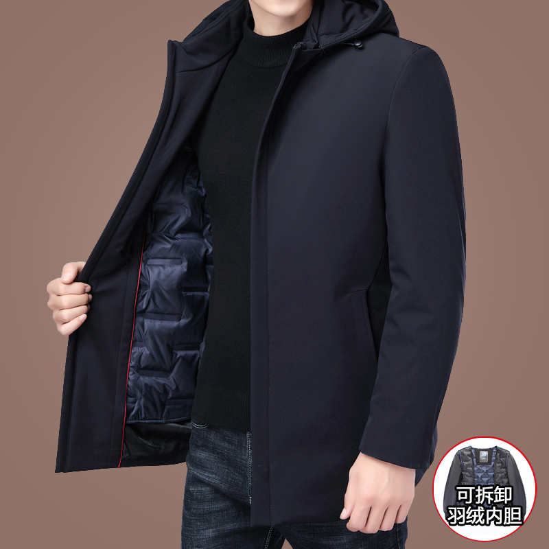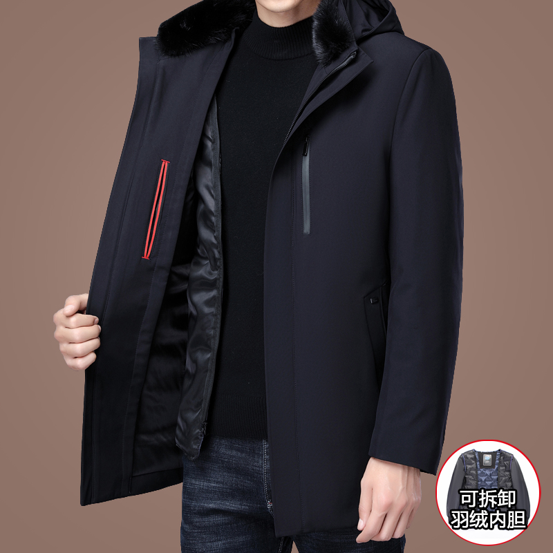Brand medium long version of men's high-end down clothes winter thickened white duck suede casual middle-aged Lianhood jacket man