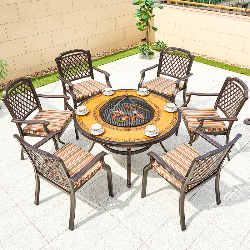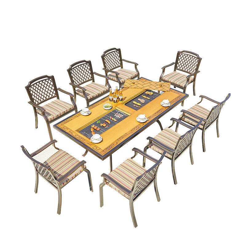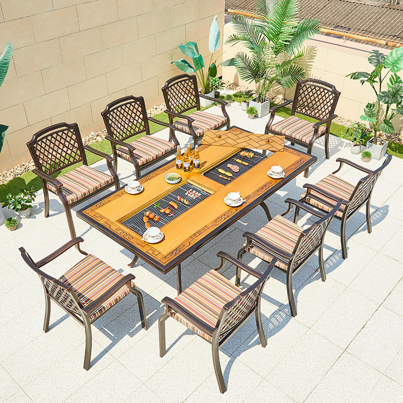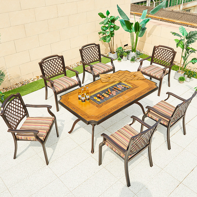 Outdoor barbecue table and chairs villa outdoor open-air garden courtyard European-style cast aluminum dining table yard casual table and chair combination