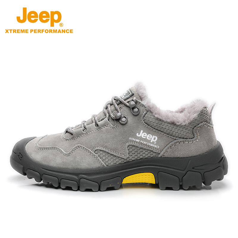 Jeep Gip Outdoor Climbing Shoes Men's Autumn Winter Plus Suede Warm Sneakers Low Helps Cotton Shoes Non-slip Dad Hiking Shoes-Taobao