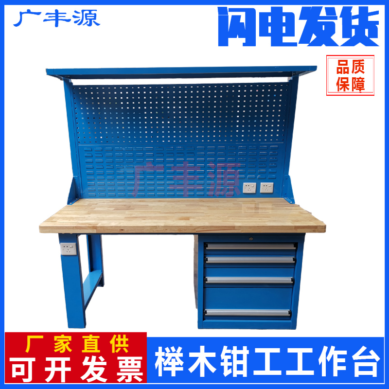 Electronic polishing maintenance Heavy beech wood bench workshop assembly model practical training fitter operation table with hanging plate lighting