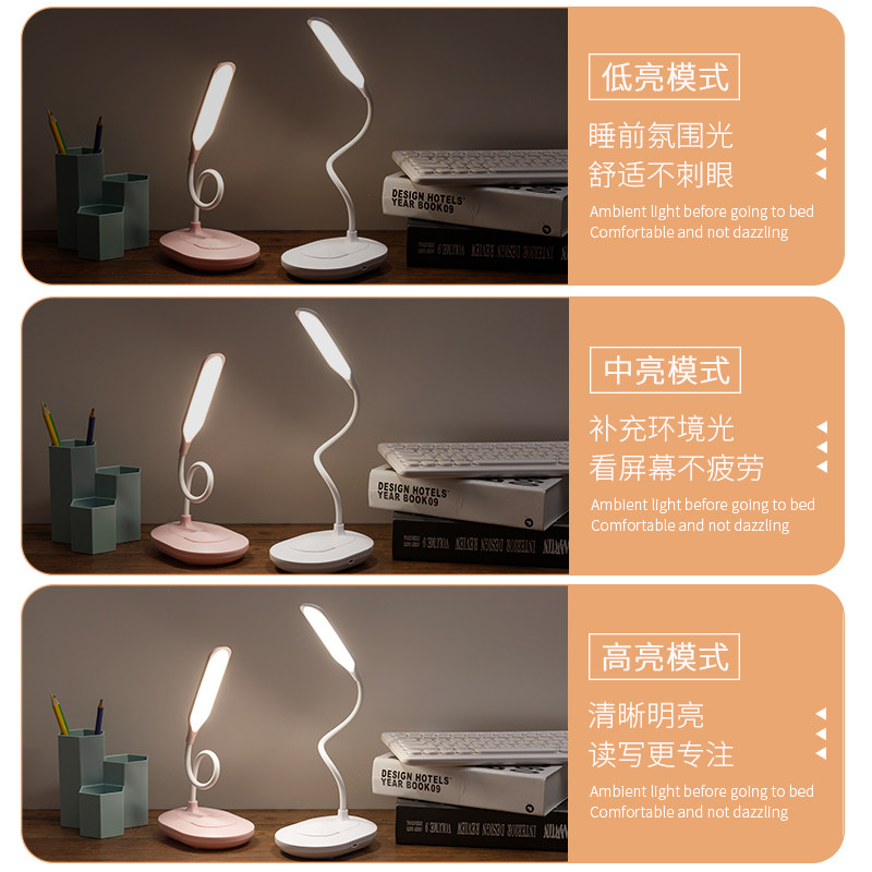 Three-way LED desk lamp desk Primary school students children's learning eye protection special charging plug-in dual-use bed bedroom lamp
