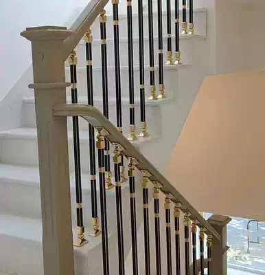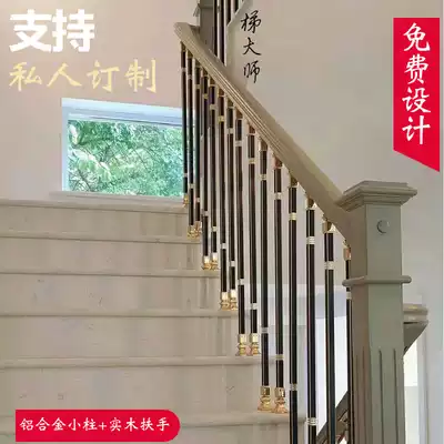 Modern simple light luxury stair handrail aluminum magnesium alloy column villa balcony fence home indoor solid wood guardrail