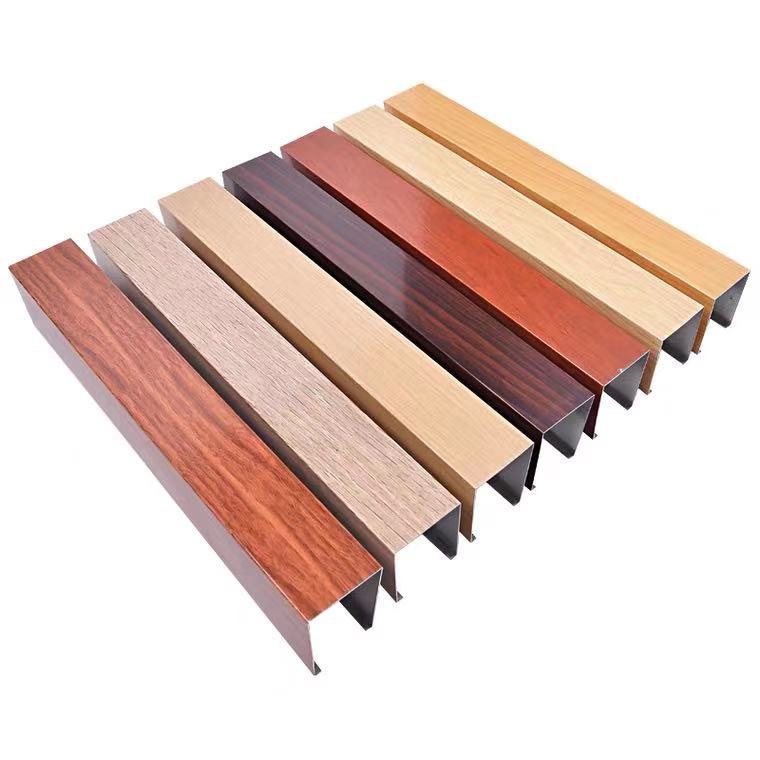 Aluminum square pass suspended ceiling square tube wood grain iron square pass door head curved ceiling partition material balcony u-slot aluminum grille