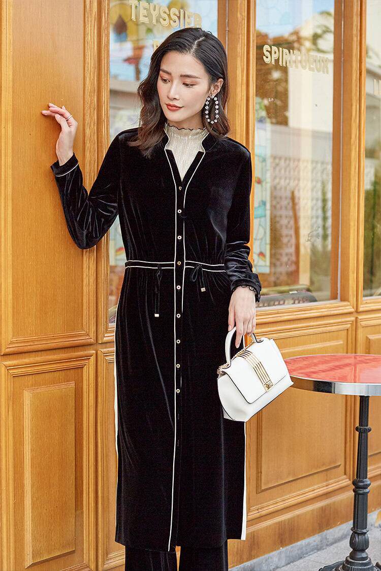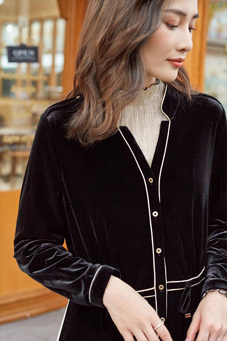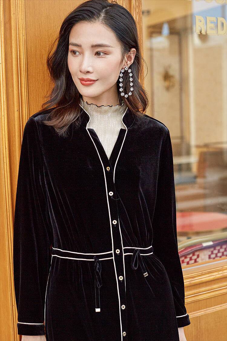 2021 autumn new domestic black velvet temperament dress KF05354W0