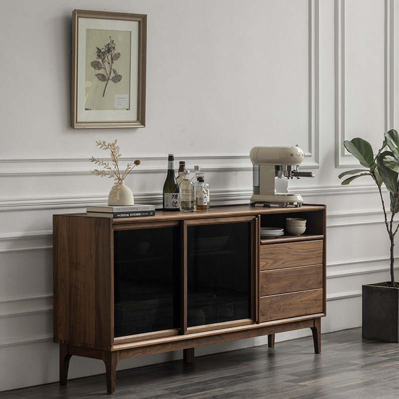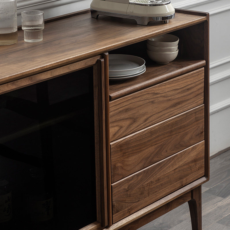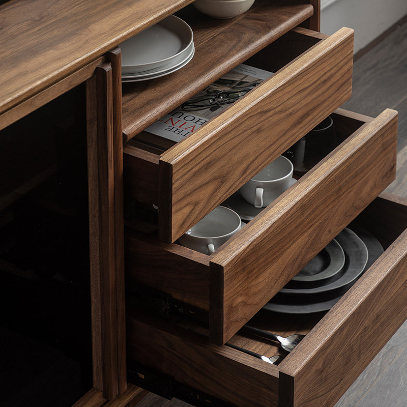 Black walnut solid wood sideboard storage wine tea storage home dining room modern minimalist living room with drawer glass
