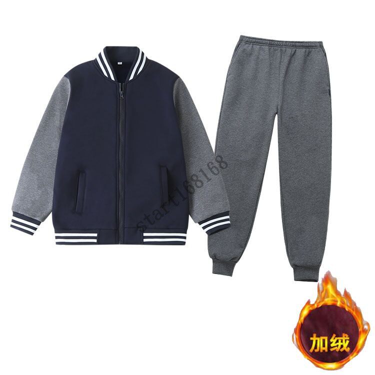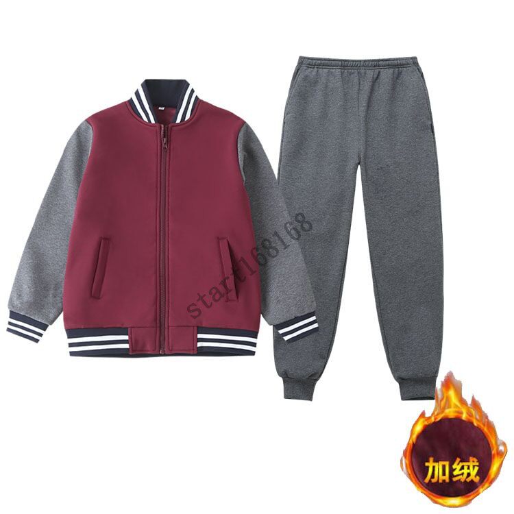 School uniform suit kindergarten clothes autumn winter style primary and middle school students sports class clothes date red Tibetan green plus velvety pull chain baseball clothes
