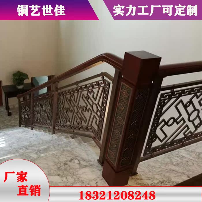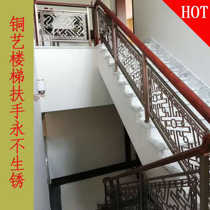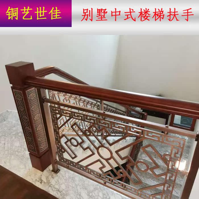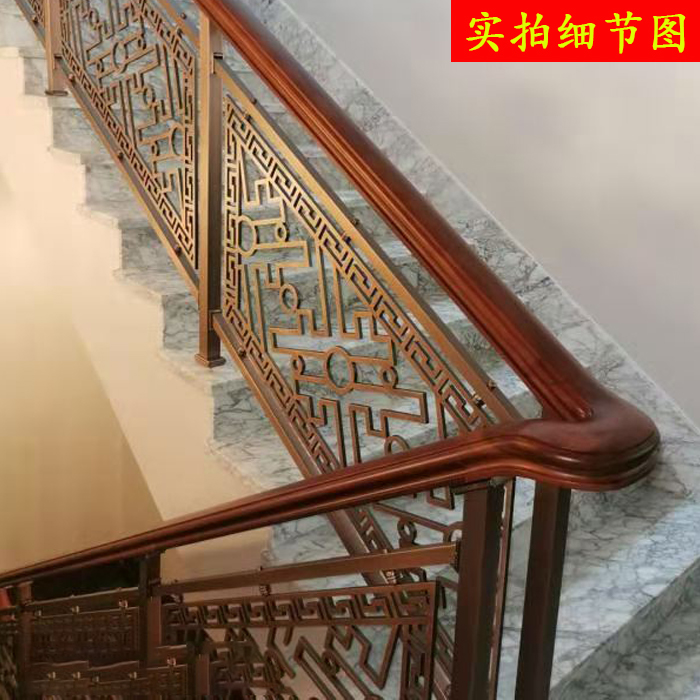 Villa copper staircase handrail new Chinese high-end simple light luxury indoor custom copper aluminum art staircase handrail