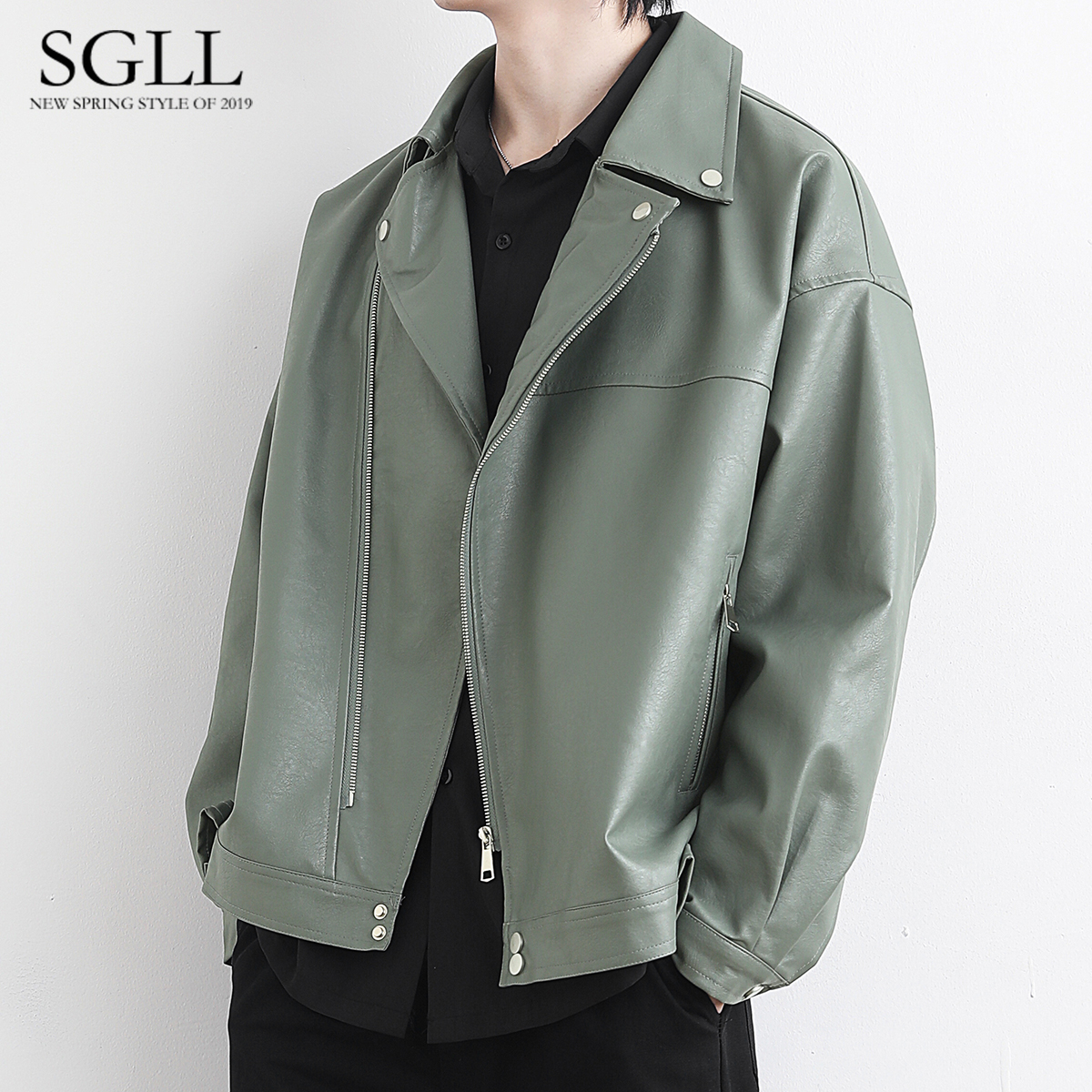 2021 new leather men's Korean version of the trend handsome loose jacket motorcycle trend brand spring and autumn casual men's coat