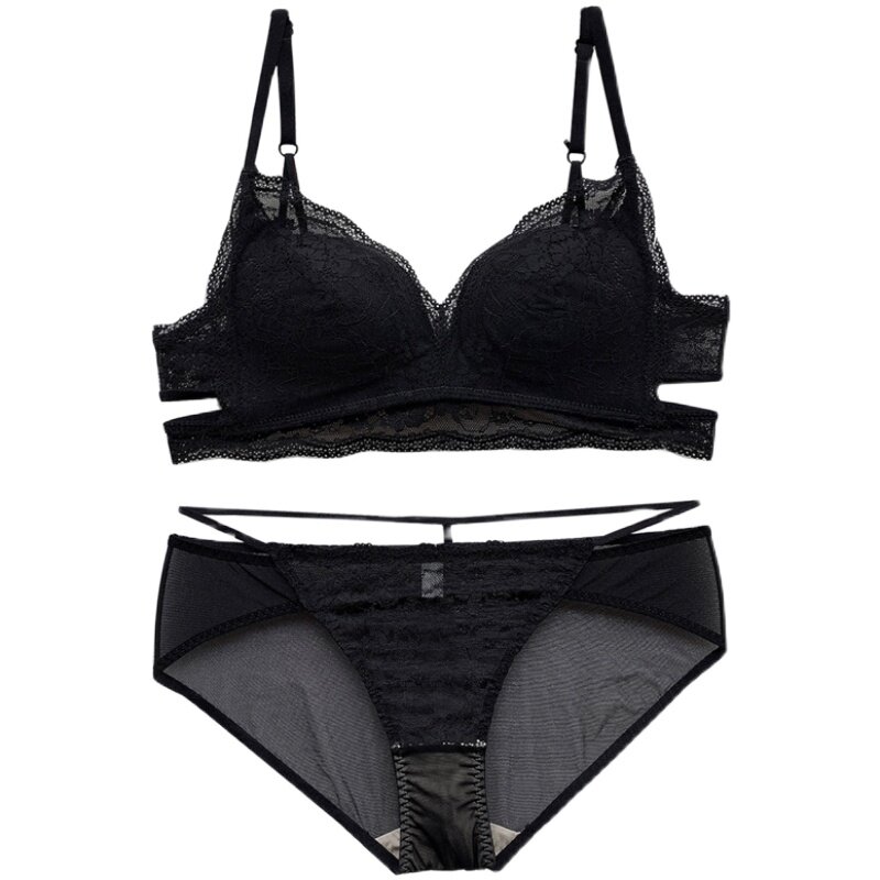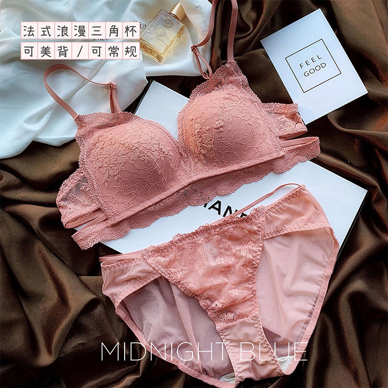 Light luxury upper body good lace sexy hollow wing beauty back underwear student small chest no steel ring bra deep V