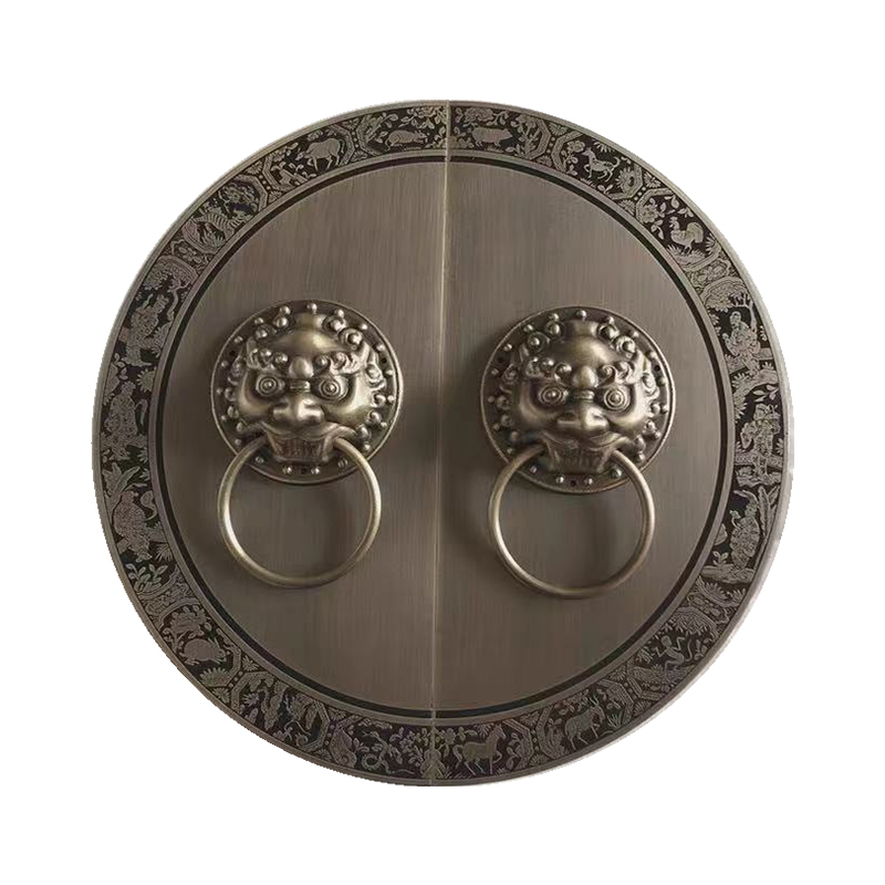 Chinese door handle pure copper handle antique beast head brass hand brass hand hand wrapped round bronze lion head handle