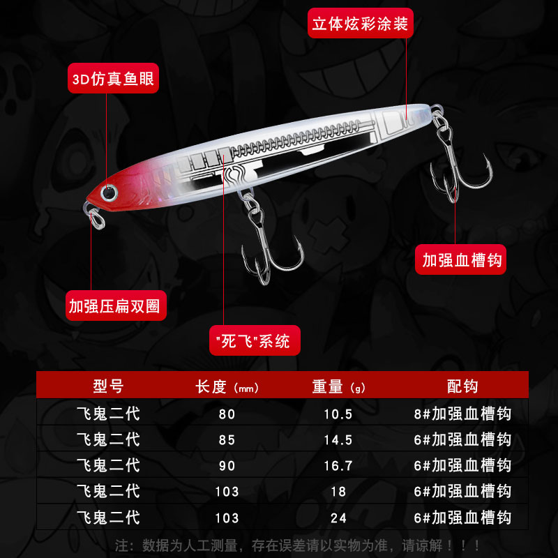 The new product Flying Ghost King second generation ultra-long throw submersible pencil Luya bait dead fly system shore throwing fresh seawater perch tilting mouth