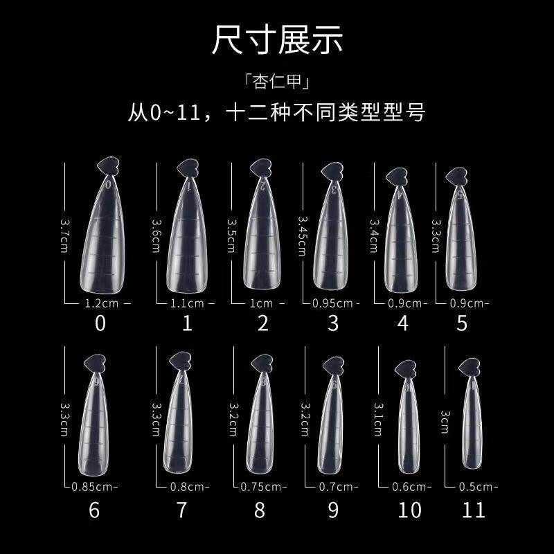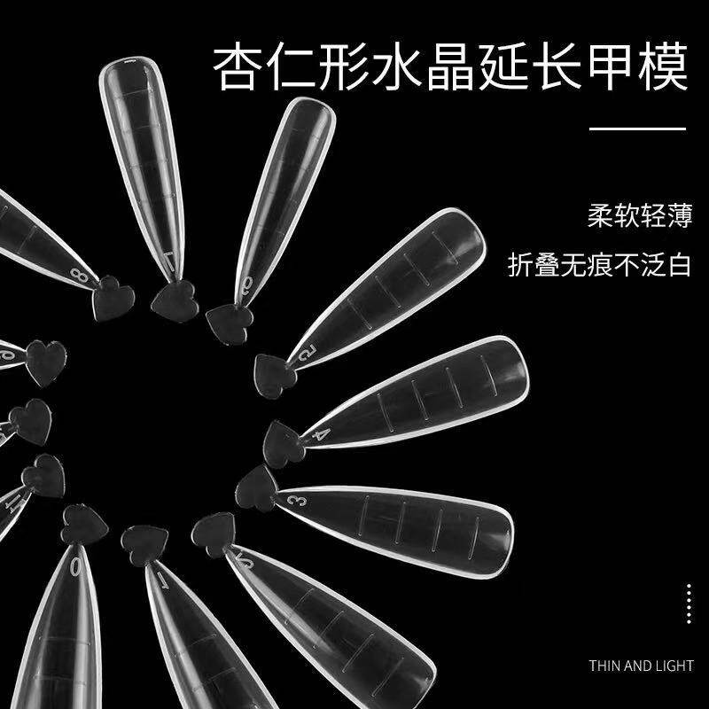Nail manicure almond type fast phototherapy crystal transparent nail piece with scale nail piece without paper holder extension glue nail mold