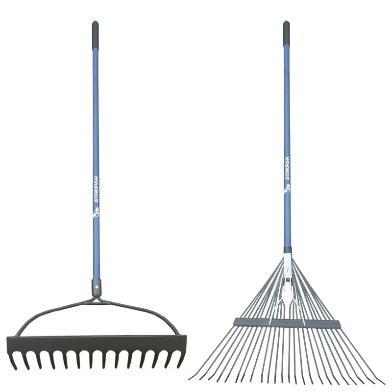 Pull the rake to clear leaves of the leaves clean the leaves tools of the farmgear gardening pine lawn sweep leaf rake
