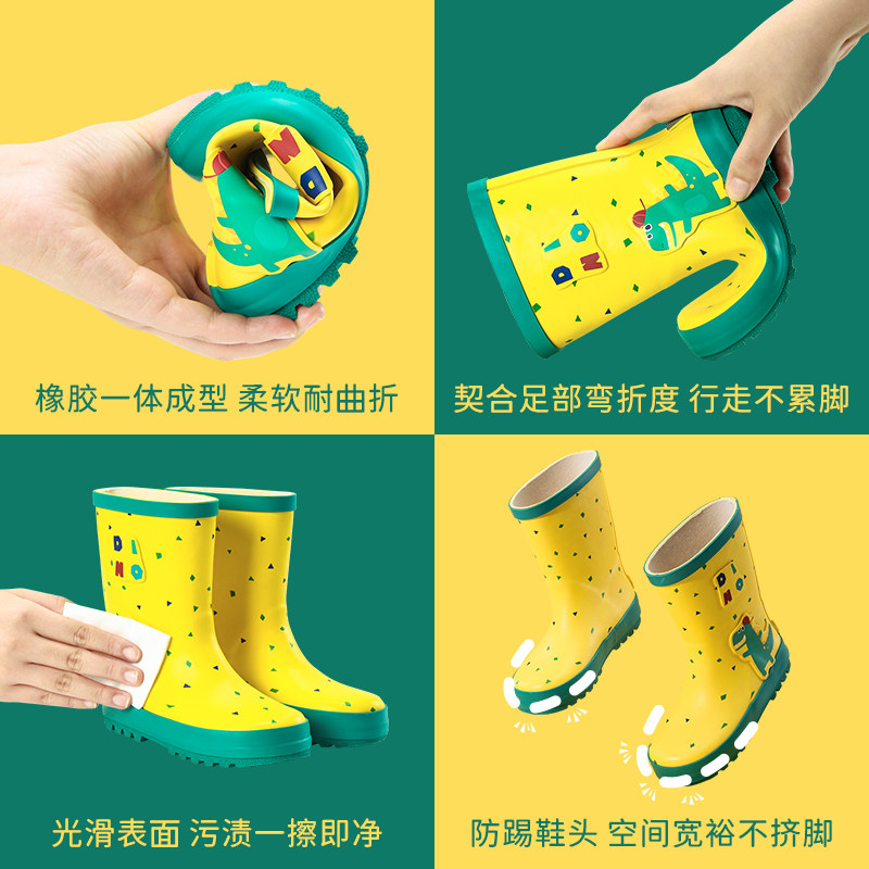 Children's rain boots boys non-slip plus velvet warm baby rain boots girls toddler water boots middle and big children primary school students water shoes