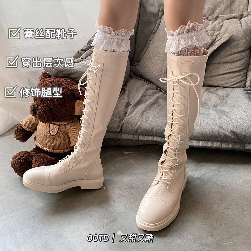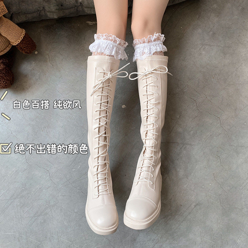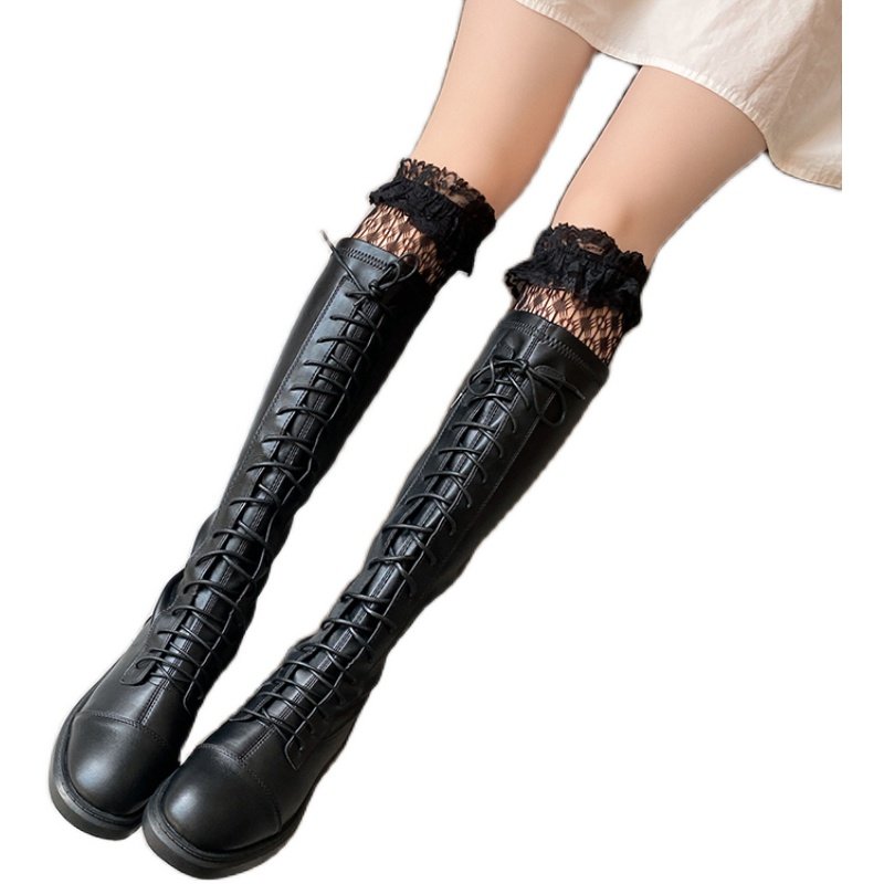 Lolita retro hollow white big lace jk black net red with boots long tube high tube knee lace stockings