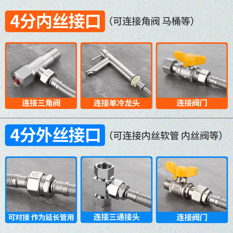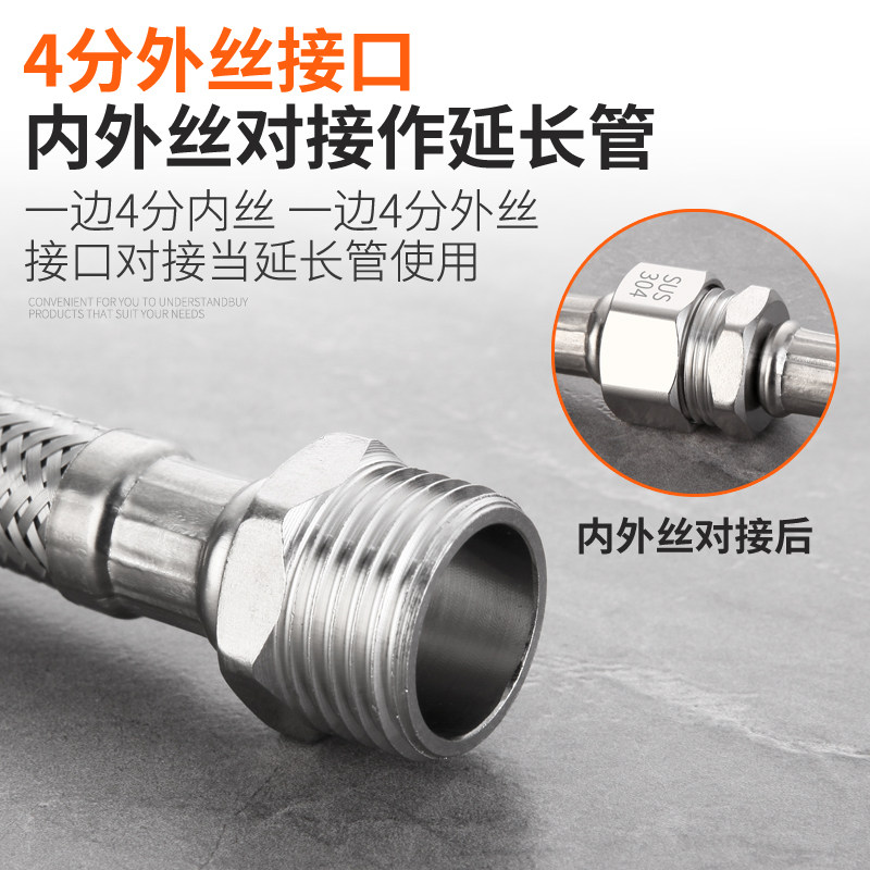 4 sub-internal silk hose lengthened extension pipe 304 stainless steel braided hot and cold water inlet pipe resistant to high temperature and explosion resistance