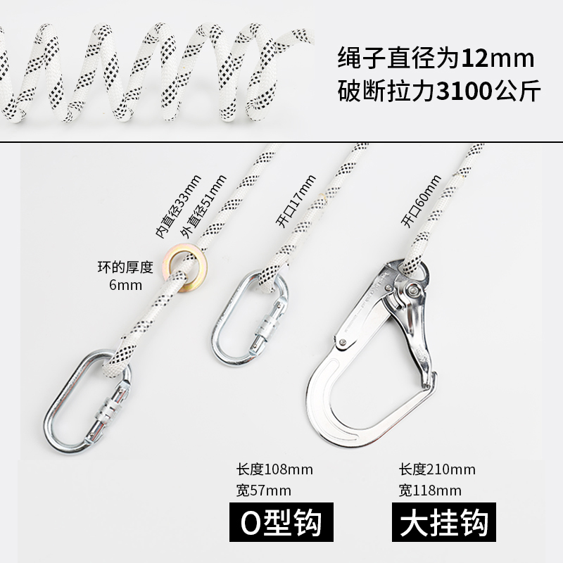 Single rope O-hook rope length 2 meters Single rope O-hook rope length 3 meters Double rope O-hook rope length 2 meters Double rope O-hook rope length 3 meters Single rope large hook rope length 2 meters Single rope large hook rope length 3 meters Double rope large hook rope length 2 meters Double rope large hook rope length 3 meters Single rope large hook rope length 2 meters (with buffer bag) Single rope large hook rope length 2 meters (with buffer bag) Double rope large hook rope length 2 meters (with buffer bag) Double rope large hook rope length 3 meters (with buffer bag) Five-point safety belt (without matching rope)
