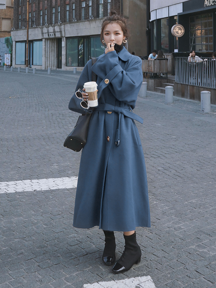 Lecea Alice Wine Red Cashmere Big Coat 2022 Winter New Loose Medium Thickened Fur Coats