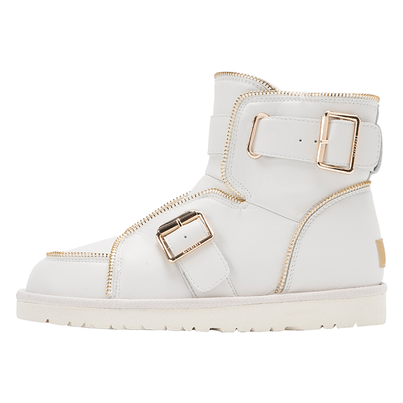 2020 winter belt buckle locomotive snow ground boots female leather hair integrated snow ground cotton shoes waterproof genuine leather plus suede thick bottom short boots
