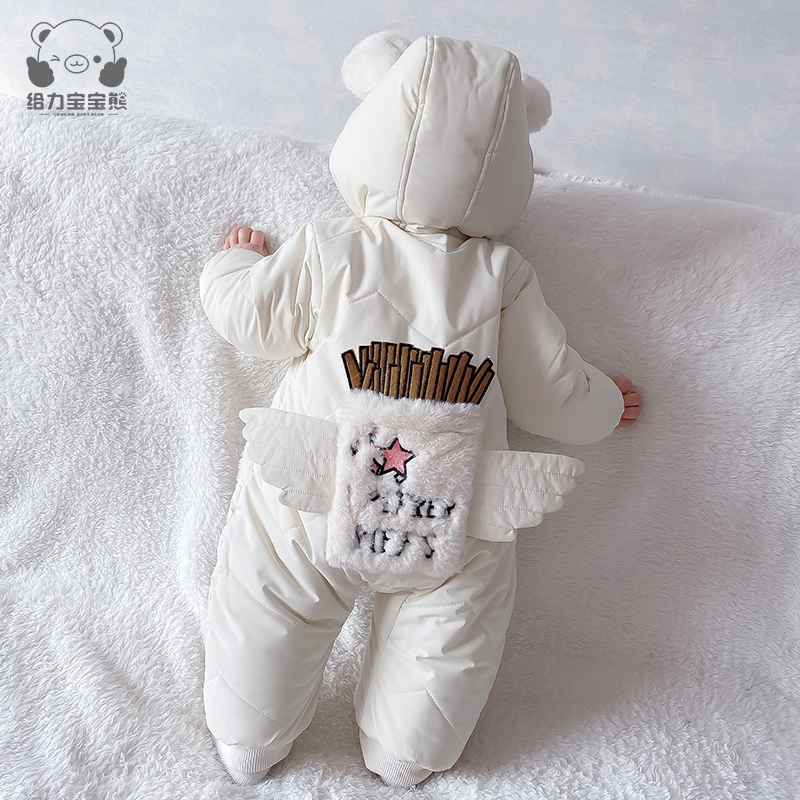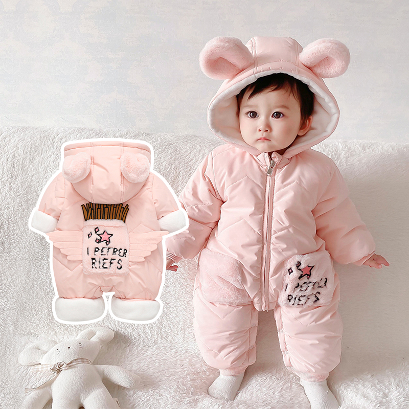 Net red newborn baby clothes winter baby girl cute princess thick jumpsuit cotton clothes out autumn and winter set