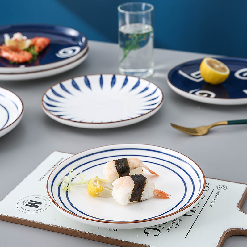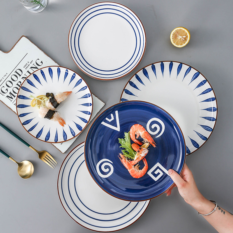 Ceramic Home Plate Sub Day Style Nets Red Ins Wind Steak Dinner Plate Creative Round Breakfast Fruit Pan Cutlery Cutlery