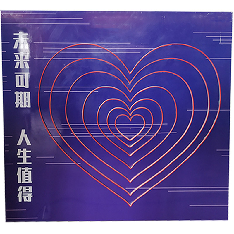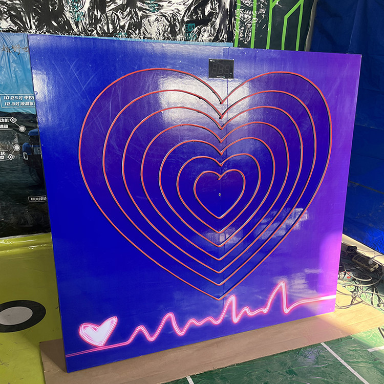 With neon light with shout to light up the love heart system contains 1.6 * 1.43 meters back panel without lights with shout to light up the love heart system neon lights with one meter without lights with double steps to light up the love heart system without lights with a beat button to light up the love heart system without lights with hand crank power generation light up love system without lights with double drums to light up the love system plus decibels